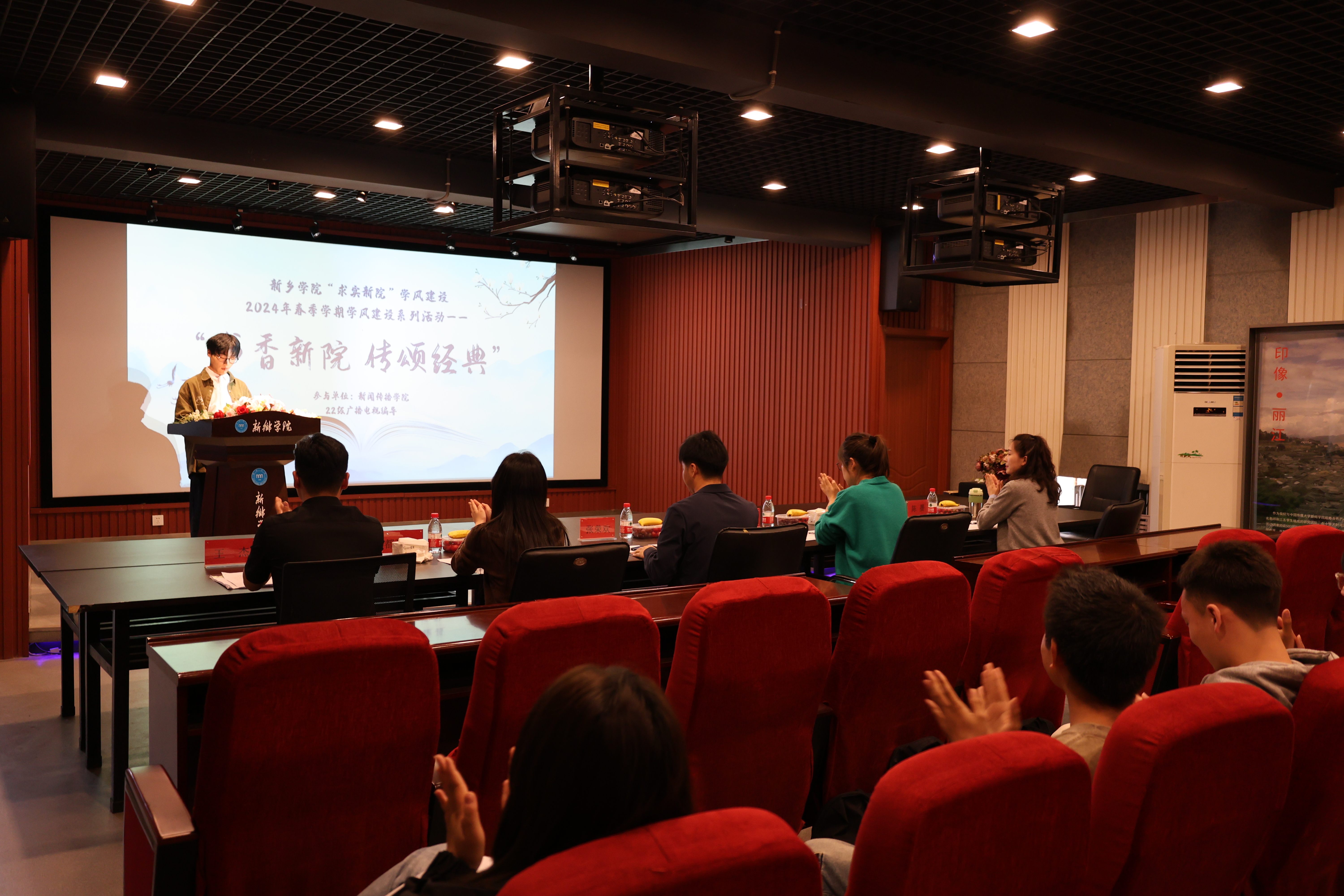 4月12日中午,太阳集团tyc151cc2022级广播电视编导专业全体学生,在A12号楼五楼审片室成功举办了“书香新院 传颂经典”读书月活动,旨在传承中华文化,弘扬民族精神,丰富校园文化生活,展现学生个性风采,营造积极向上的校园文化氛围,同时推动校园整体学风建设和发展。
