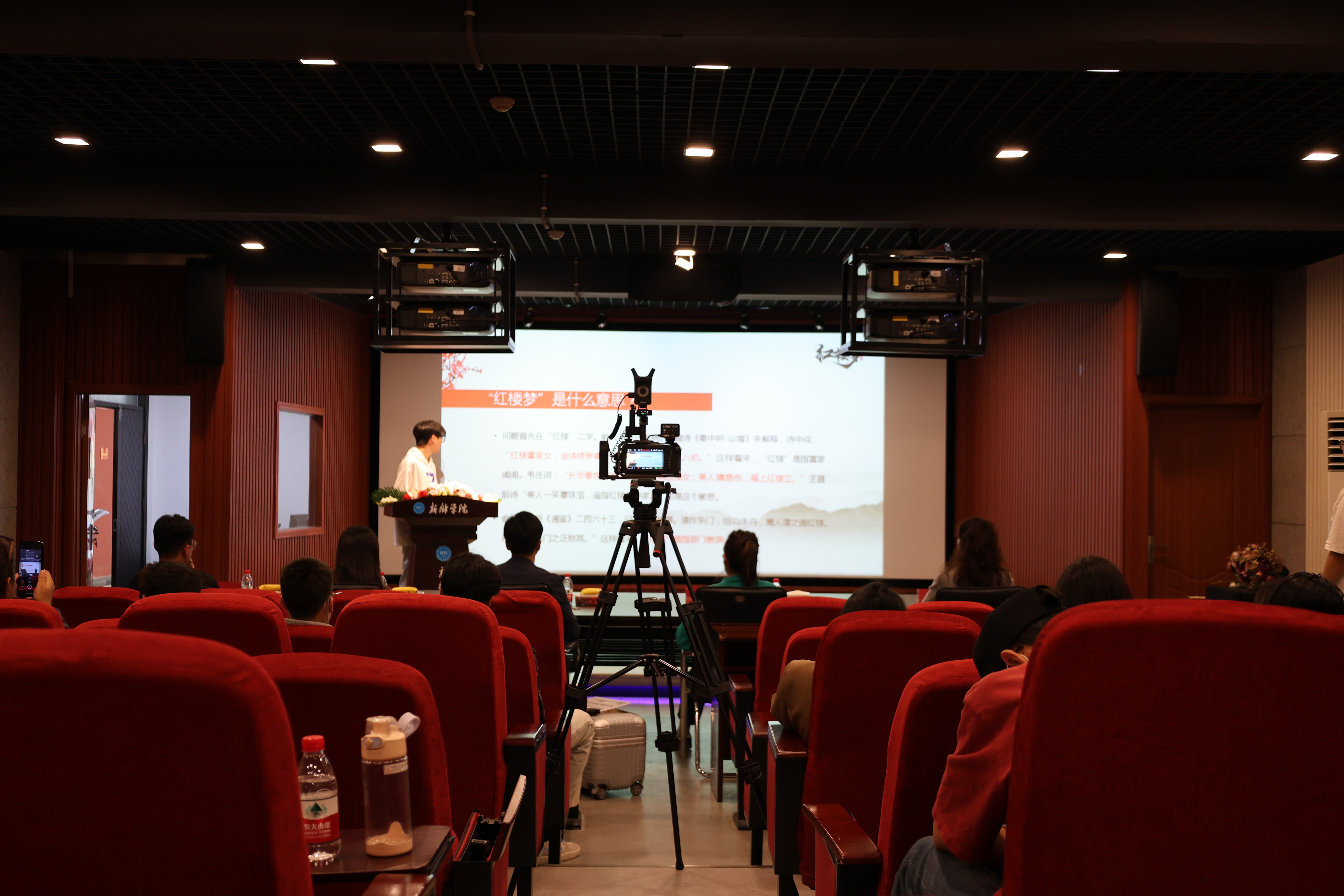 活动伊始,各班负责人组织同学有序入座。22级广电2班同学夏诗童担任主持人,30余名同学以朗读、朗诵、演讲、PPT展示等多种形式分享自己喜爱的书籍和读书心得,内容涵盖书籍简介、亮点精华、个人感受和启示,以及读后的实践和运用等。