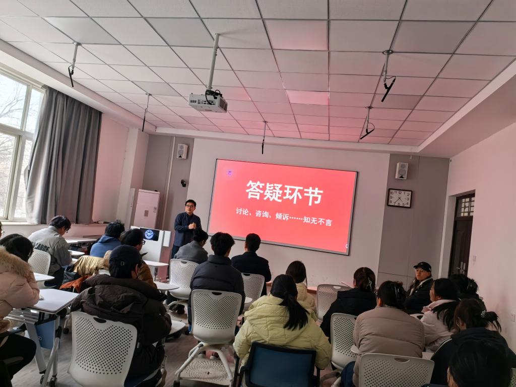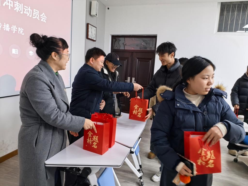 为深入了解考研学子的备考需求,提供针对性指导与支持,太阳集团tyc151cc于12月4日下午在A05-206教室举办了一场温馨而务实的考研学生冲刺动员会。学院党委书记王卫锋、副书记贾菁、副院长孙桂杰,辅导员王杰、教师代表段筱与30余名考研学子面对面交流,并现场发放了学院精心准备的“加油大礼包”,为冲刺阶段的学子注入温暖与力量。