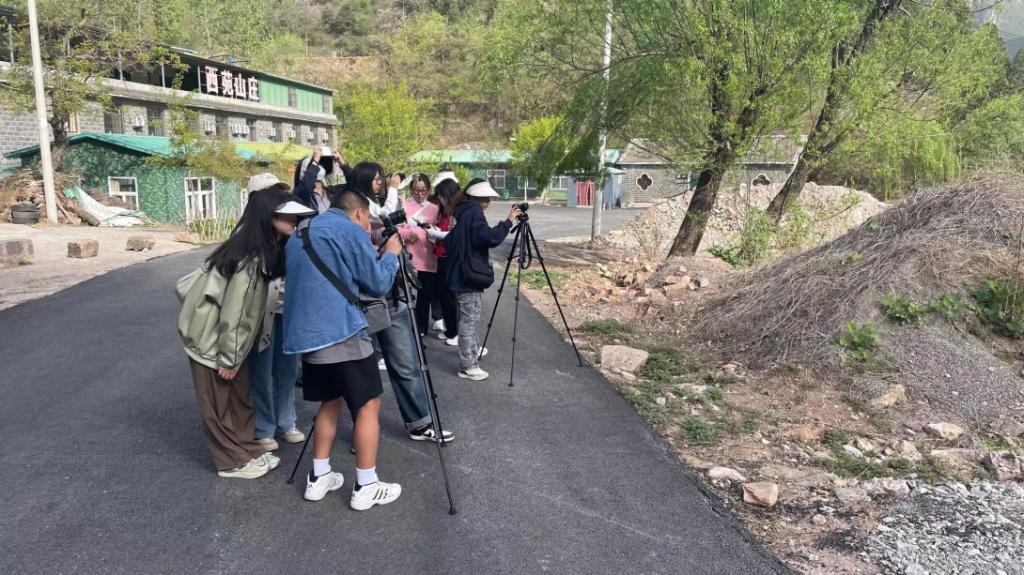 秋沟村山高林密、峡谷壁垂,自然景观有利于摄影摄像作品的创作。同学们白天在老师和指导下进行拍摄创作,晚上在驻地整理素材并剪辑制作。