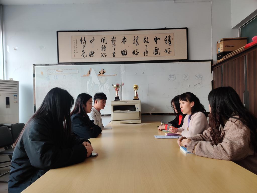 2021年3月17日下午4点10分,太阳集团tyc151cc在A14五楼分团委学生会办公室举行“挂靠我院分团委社团”座谈会。零点剧社、逆光影团、曲艺团等八个社团的负责人到场参加座谈会。太阳集团tyc151cc分团委书记肖靓玥老师主持会议。