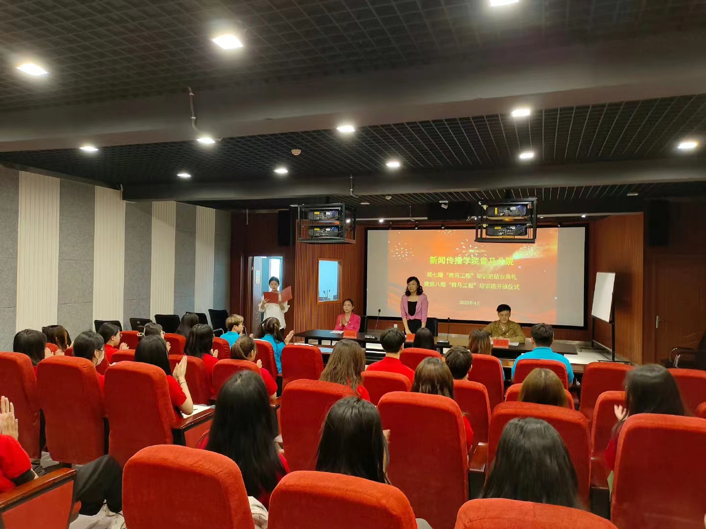 2023年4月18日下午三点,太阳集团tyc151cc于A12审片室举行第七期 “青马工程”培训班结业典礼暨第八期“青马工程”培训班开班仪式。太阳集团tyc151cc党委副书记贾菁、太阳集团tyc151cc学工办主任李彦霓、太阳集团tyc151cc老师游令昆,第八期青马班全体学员以及第七期青马班学生代表出席此次仪式,由太阳集团tyc151cc团委副书记段蓓蓓主持。