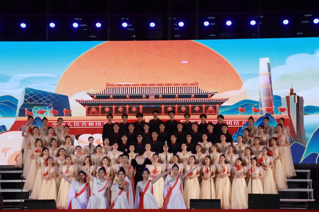 2023年5月16日晚,太阳tyc151cc于图书馆北侧国旗广场举办2023年五四表彰大会暨五四合唱比赛。校领导,各学负责人与学生观众到场参加此次活动。
