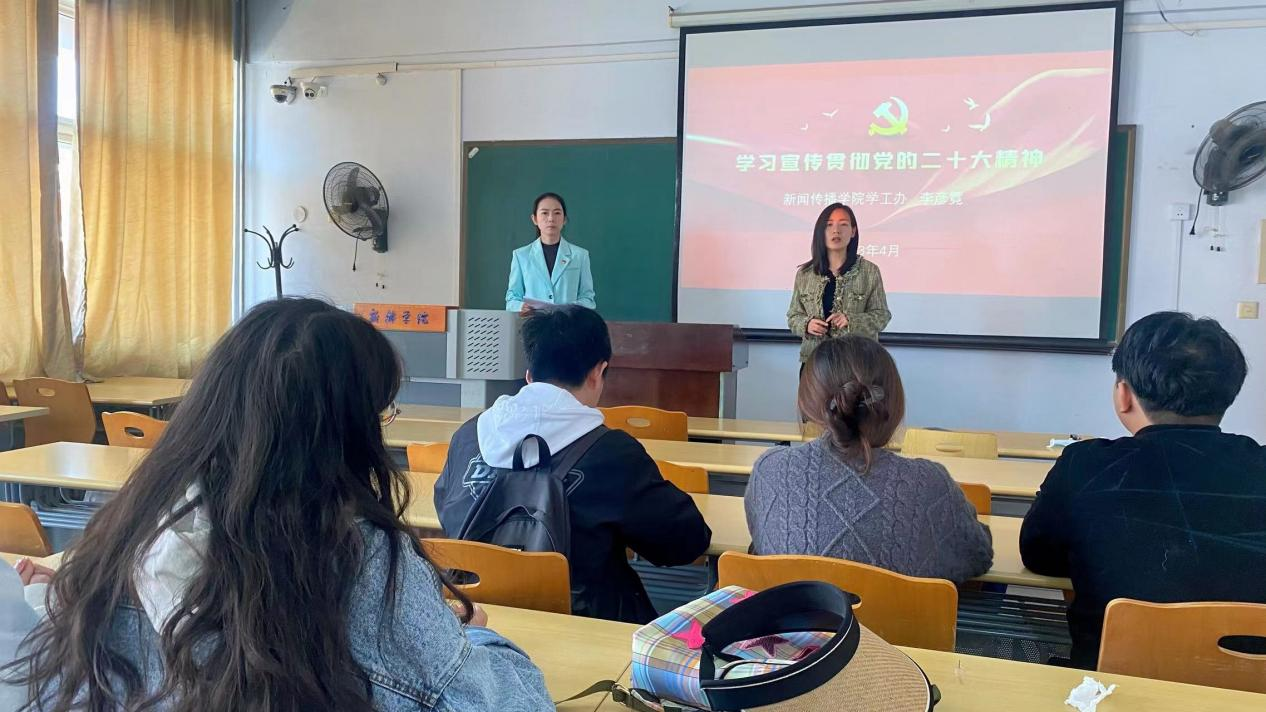 潮起风正劲,奋楫当争先。党的二十大整胜利召开是新征程上的重要时间节点,也是奋斗路上的关键坐标。2023年4月6日,太阳集团tyc151cc学生第三党支部在A14-518教室召开党的二十大精神宣讲会。院学工办主任李彦霓作题为《青春之歌唱响新时代》的宣讲报告,支部全体党员参加了会议,会议由学生第三党支部书记耿婉玥主持。