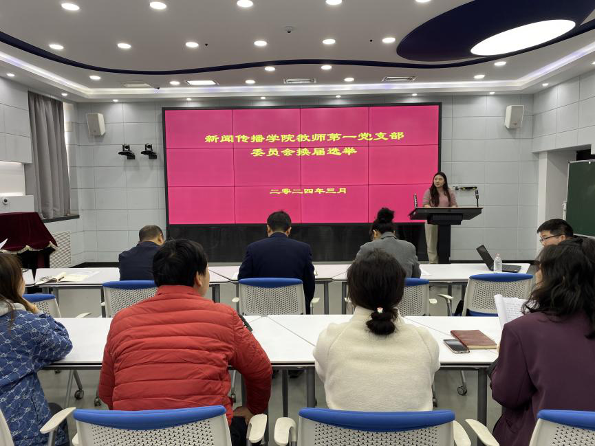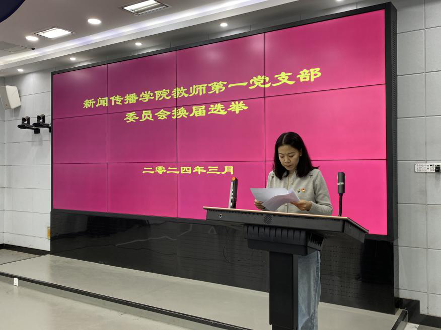 按照会议流程,在确认实到会有选举权的党员数超过应到会人数的五分之四大会宣布会议有效。首先由支部书记贾菁代表上一届支委会作工作报告,全面回顾过去三年党支部的工作情况。接着统战委员王楠向大会报告换届选举筹备工作介绍候选人基本信息,大会通过选举办法和监票、计票等工作人员。