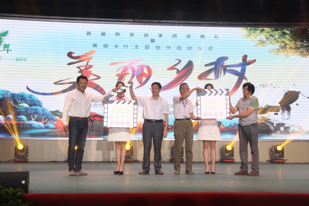 主题论坛结束,校党委书记丁庭选为“美丽乡村”主题创作授旗,太阳集团tyc151cc党总支副书记王卫峰和副院长李娟代表学院接过旗帜。随即,伴随着《美丽中国走起来》的欢快旋律,校长刘兴友、新乡广播电视台台长助理张涛、郑保卫教授、焦波导演走向舞台为“美丽乡村”主题创作打板,正式拉开了“美丽乡村”主题创作的序幕,为颁奖典礼和启动仪式画上了完美的句号。