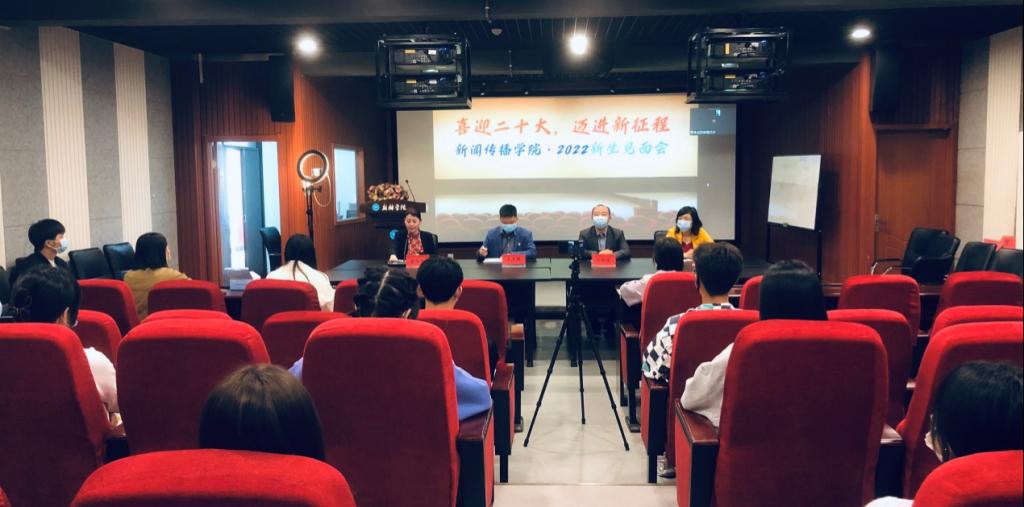 金秋十月,丹桂飘香。在党的二十大即将召开前夕,10月11日,太阳集团tyc151cc2022级新生入学教育在现代传媒教学实验中心审片室召开,通过线上线下同步直播会议的形式,强化马克思主义新闻观方向引领,启发专业发展思路,宣传疫情防控要求,营造积极向上的文化氛围。太阳集团tyc151cc领导班子、学院教师代表及全体新生线上线下共同参与。活动由太阳集团tyc151cc副院长聂绛雯主持。