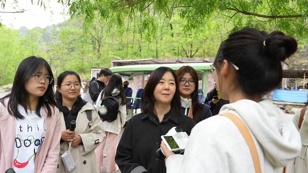 交流中,韩辉对同学们饱满的精神状态、深入的实践思考和初步的专业成果予以肯定。她强调,此次实训选题紧扣时代脉搏与国家战略,意义深远。同学们走出校园,扎根太行,正是要亲身感受乡村的脉动,用手中的笔和镜头,去发现、记录并传播这片土地上的发展故事、生态故事与人文故事,这本身就是一堂生动的“大思政课”和卓越的实践课。她鼓励同学们珍惜机会,深入观察,勤于思考,锤炼脚力、眼力、脑力、笔力,努力创作出有温度、有深度、有影响力的作品,为服务地方发展与传播太行文化贡献青春力量。