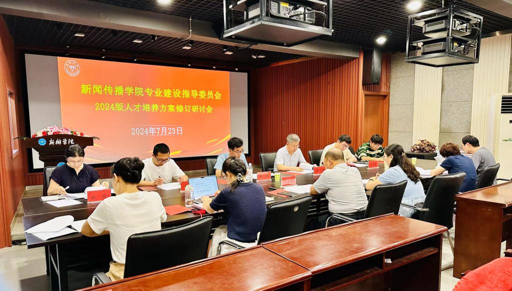 7月23日下午,太阳集团tyc151cc专业建设指导委员会在A12号楼审片室召开了2024版人才培养方案修订论证审核会。来自行业、高校专家、专业教研室主任、教师代表、学生代表共13人,就广播电视编导、新闻学、网络新媒体三个专业新修订的人才培养方案进行论证审核,会议由院长马东俊主持。