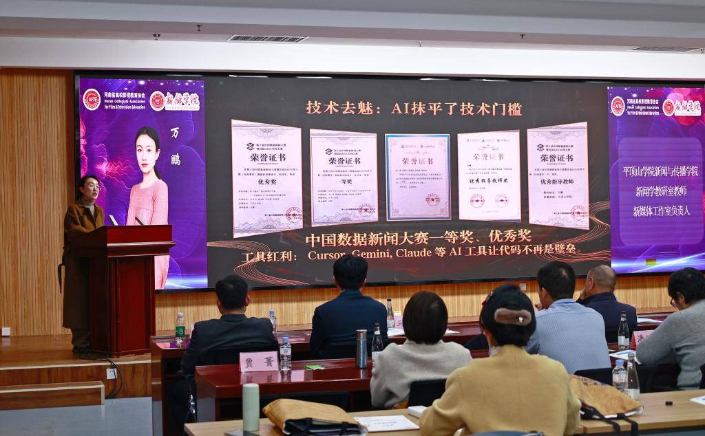 平顶山学院新闻与传播学院新媒体工作室负责人万鹏聚焦《人工智能+文化基因:AIGC赋能地方文化的视觉表达》,阐述了AIGC技术在传统文化传播中的创新应用。他表示,利用人工智能技术提取地方文化核心基因,通过数字化、视觉化呈现方式,能够让传统文化在新时代焕发生机与活力,实现技术创新与文化传承的深度融合。