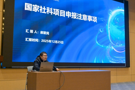 本次培训会特邀郑州航空工业管理学院经济学院院长郝爱民教授作专题指导。他结合自身主持国家社科基金项目的实践,以及多项标志性应用成果经验,从政策演进逻辑、评审内在机理、申报关键节点等方面展开分享。报告聚焦选题的时代性、学理性与可行性,详解论证严密性、文本细节规范及技术路线可视化等实操要点,内容兼具理论高度与实践指导意义,为教师申报工作提供全方位指引。